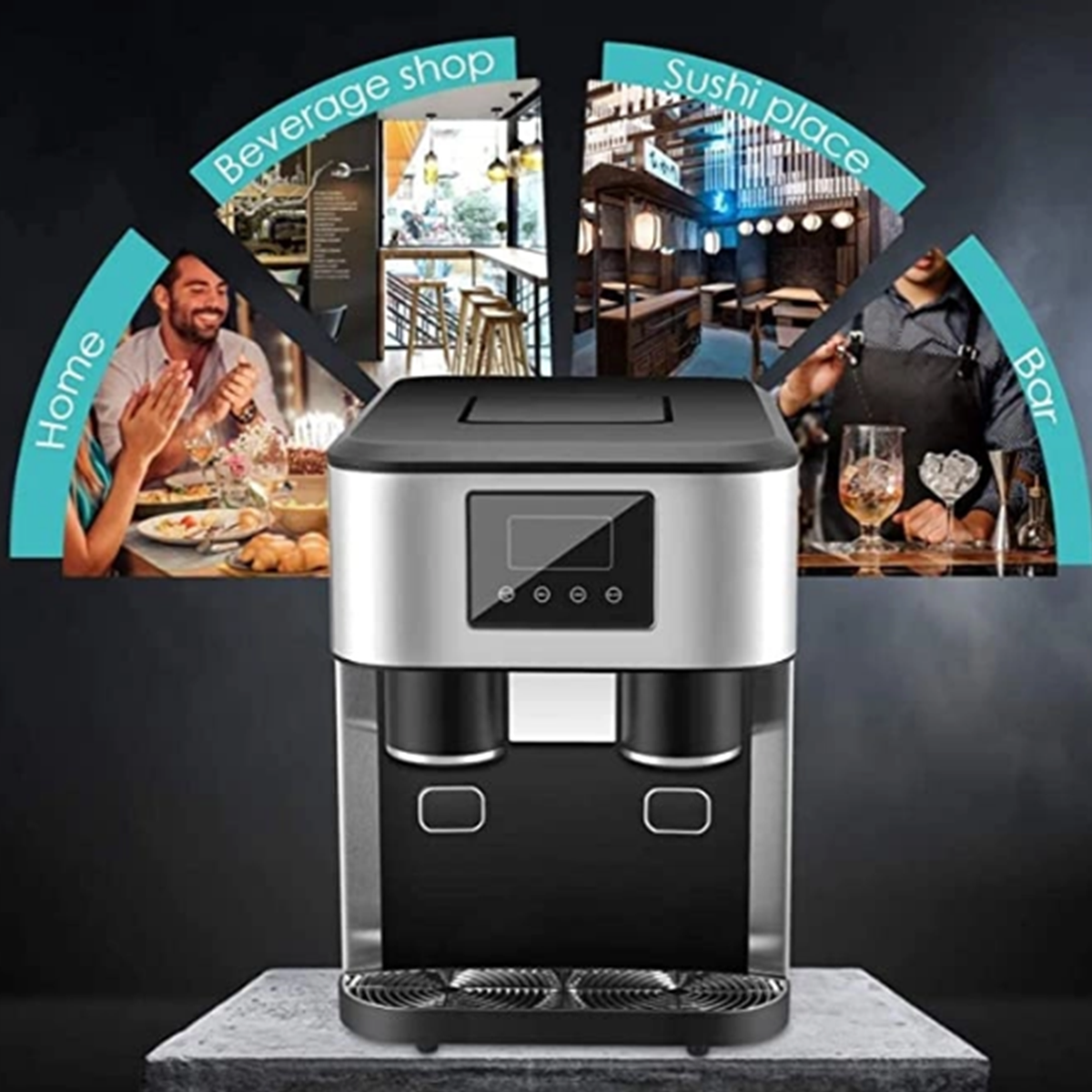 ماكينة ثلج 3 في 1 مع كسارة ثلج وموزع مياه باردة، خزان مياه 1.8 لتر مع إنتاج يومي من 15 إلى 18 كجم