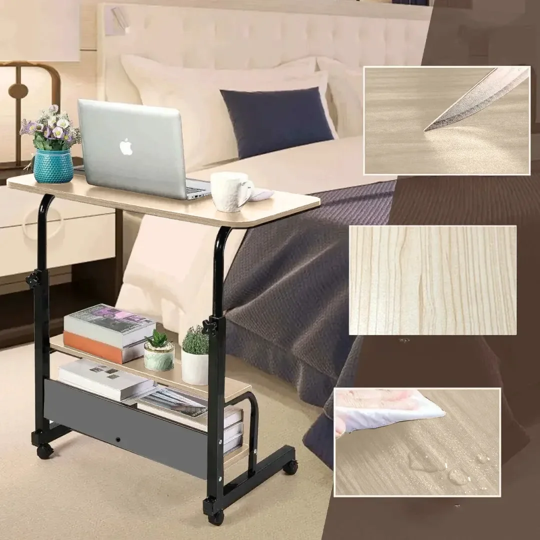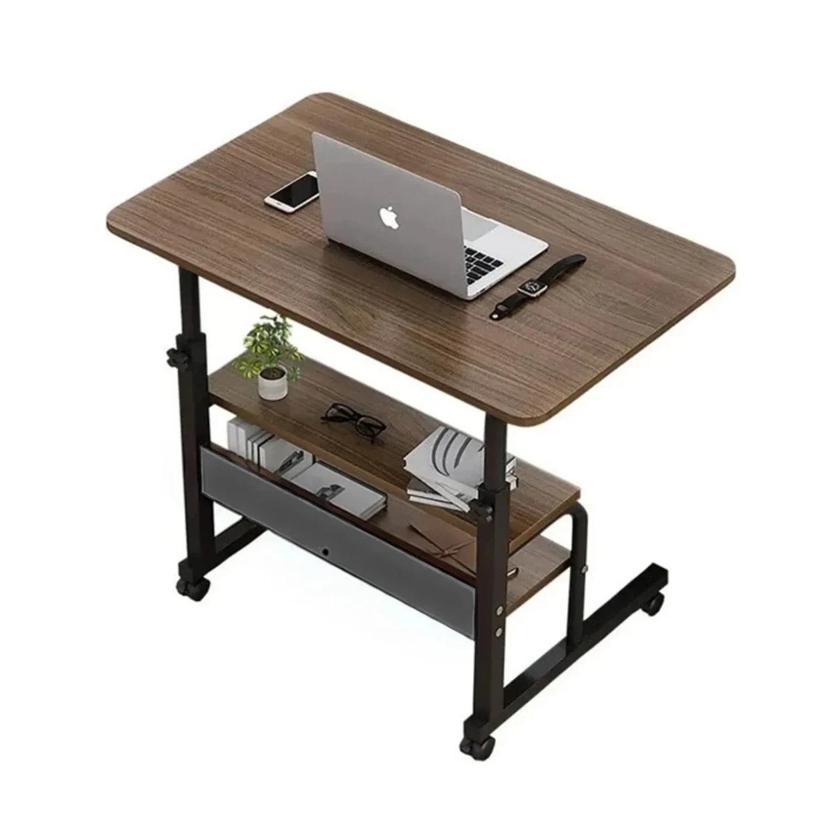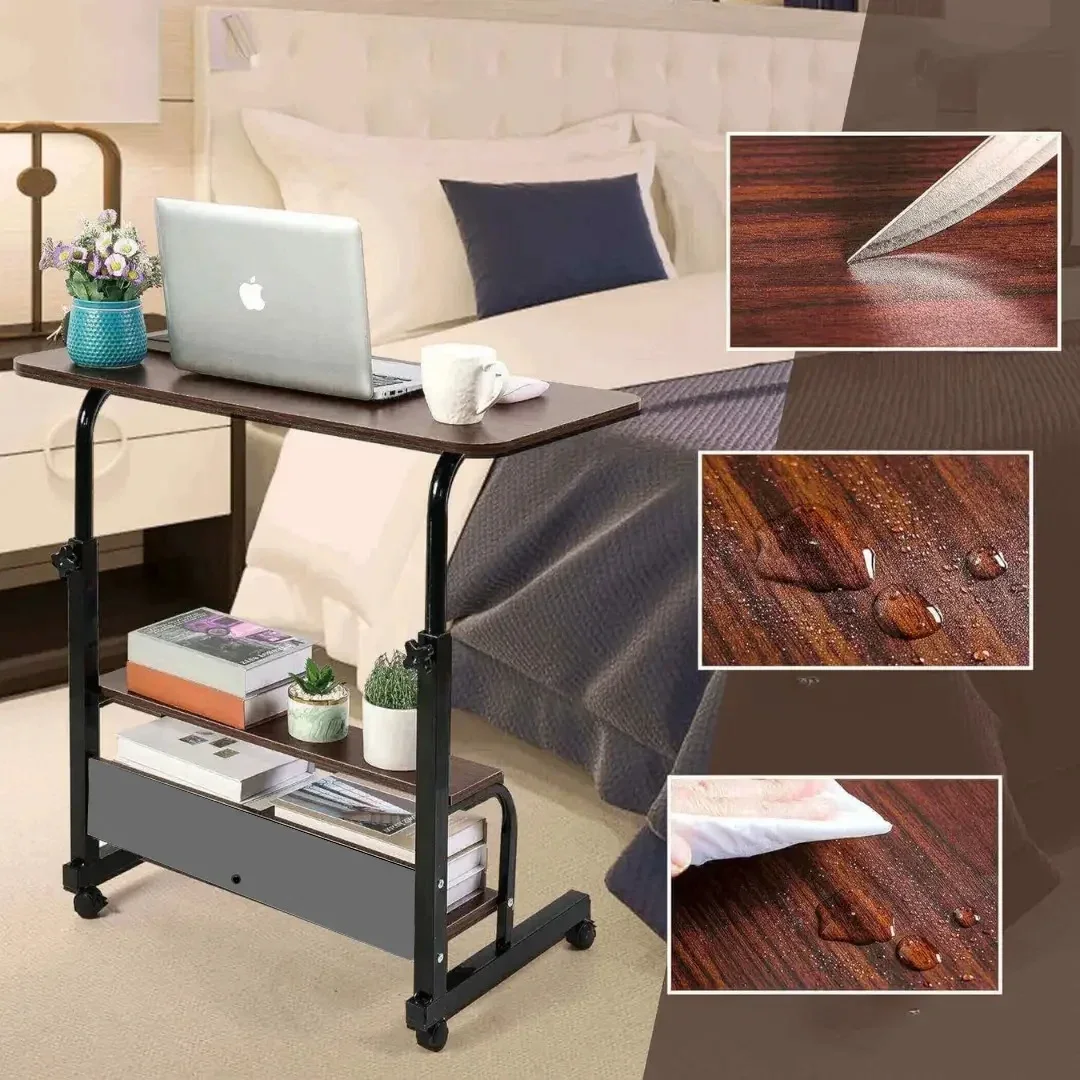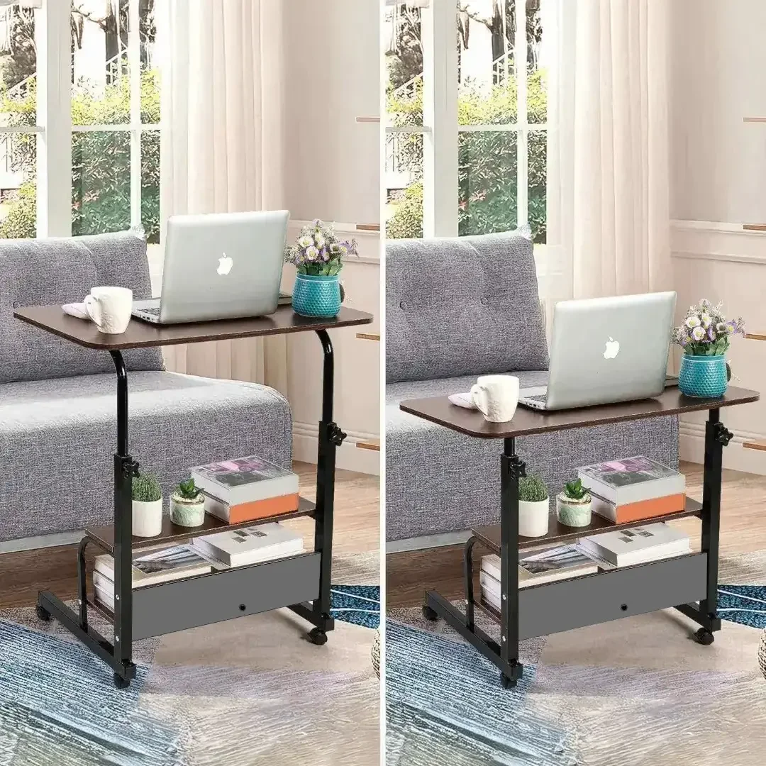 طاولة جانبية خشبية قابلة لتعديل الارتفاع بسطح مقاوم للخدوش والماء مثالية للدراسة والعمل - باللون البني