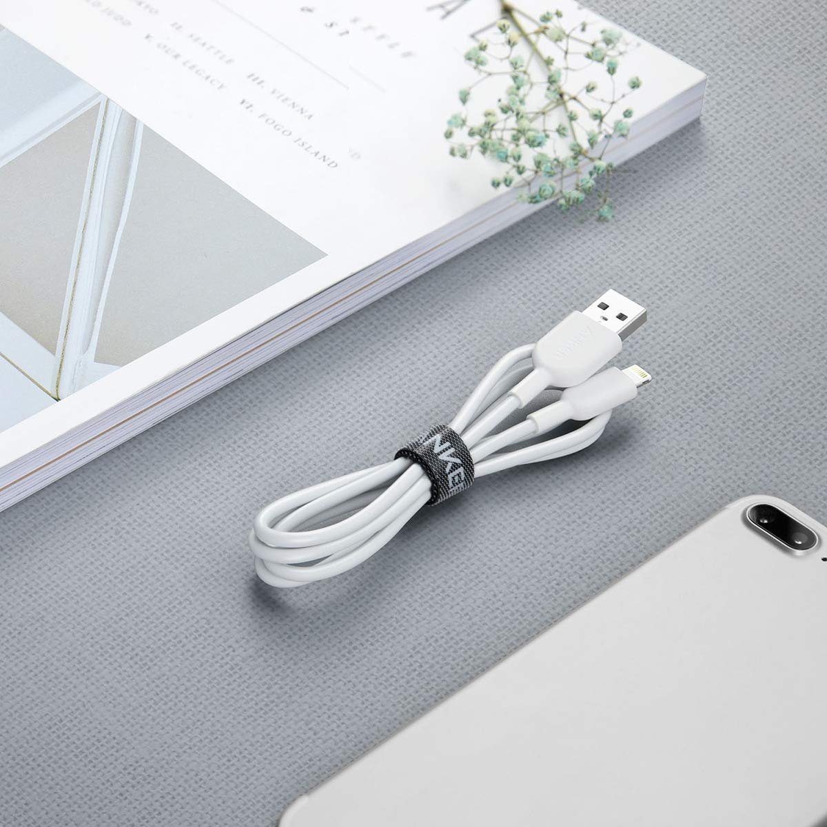كيبل باورلاين II لايتنينج إلى يو اس بي - سي بطول 3 قدم - باللون الابيض من انكر