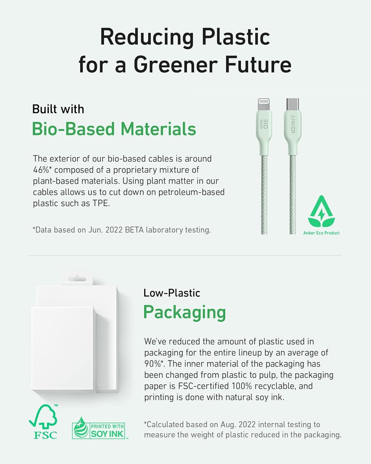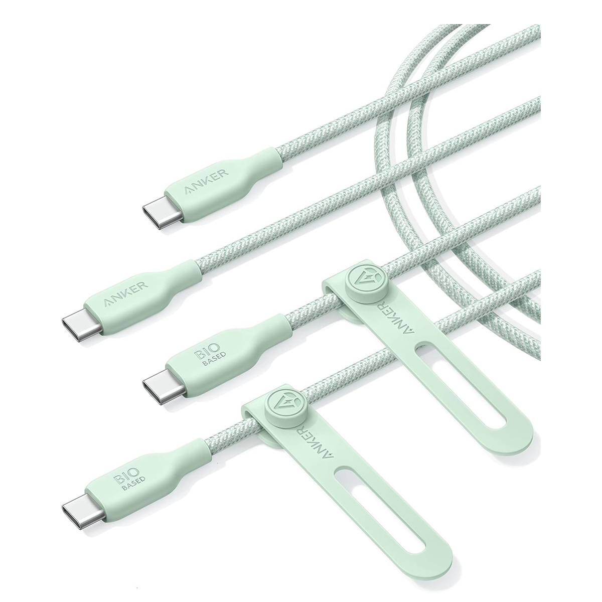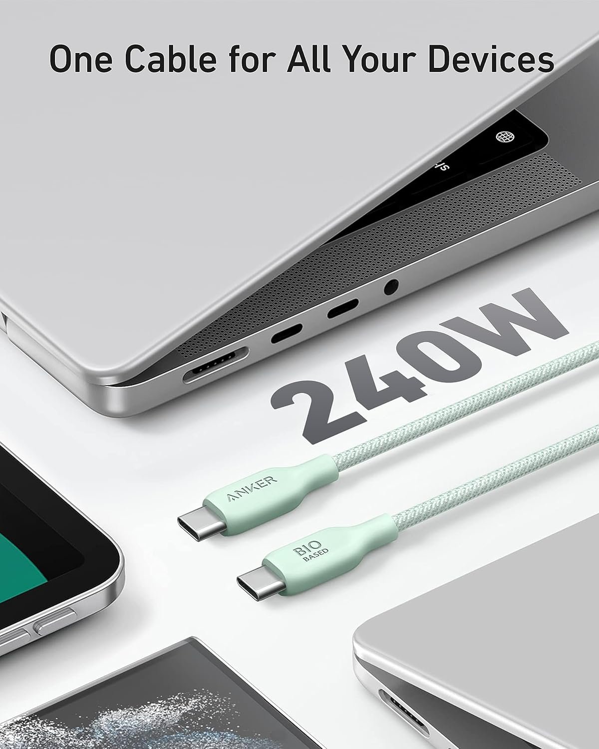 • 2 × كابل Anker USB-C إلى USB-C (بطول 6 أقدام، قدرة 240 واط، مضفّر حيوي)