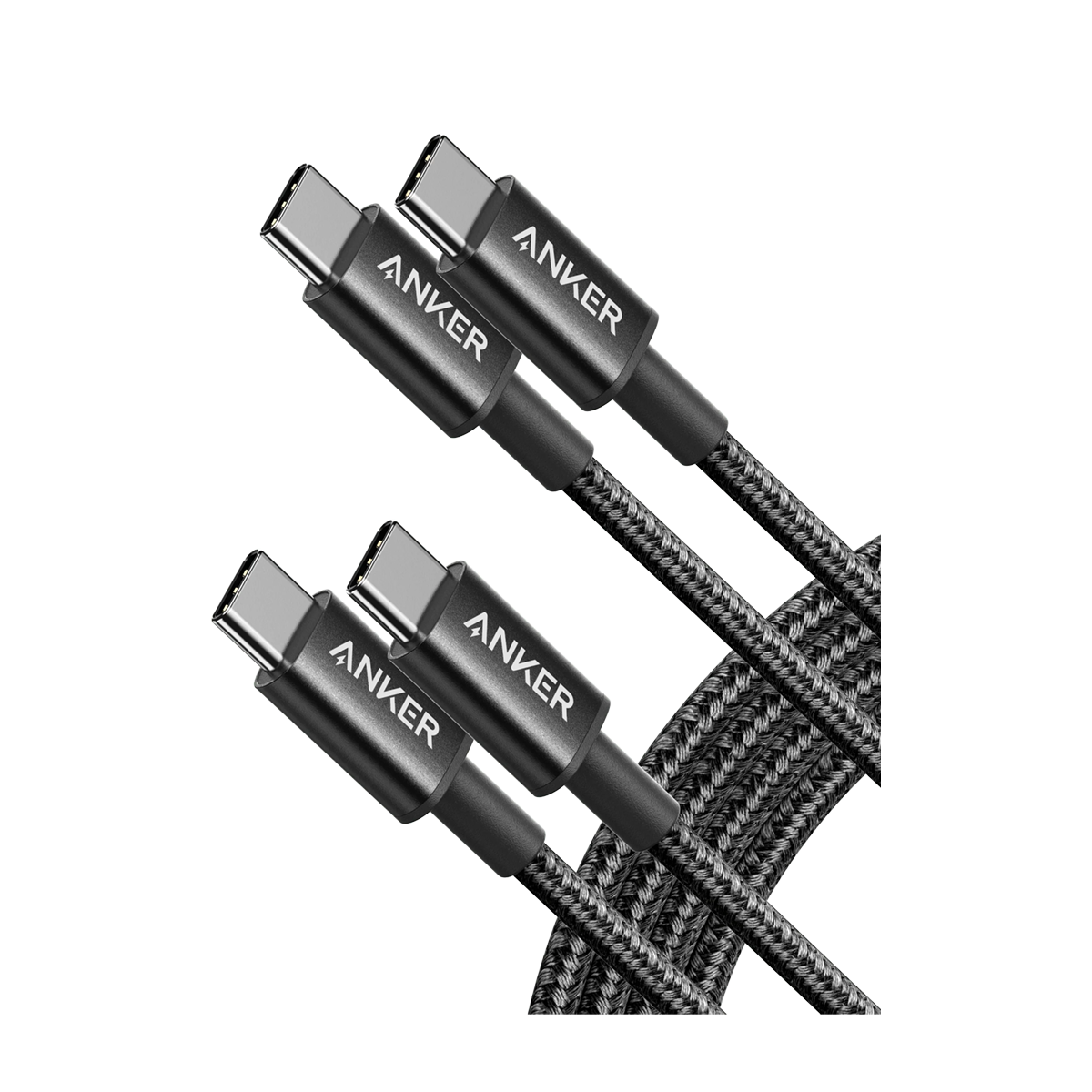 كيبل USB-C إلى USB-C بقوة 60 واط وبطول 6 قدم - قطعتين - باللون الاسود من انكر