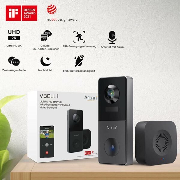 جرس باب ذكي خارجي يعمل بالبطارية من Arenti – راقب منزلك بكل وضوح وسهولة!