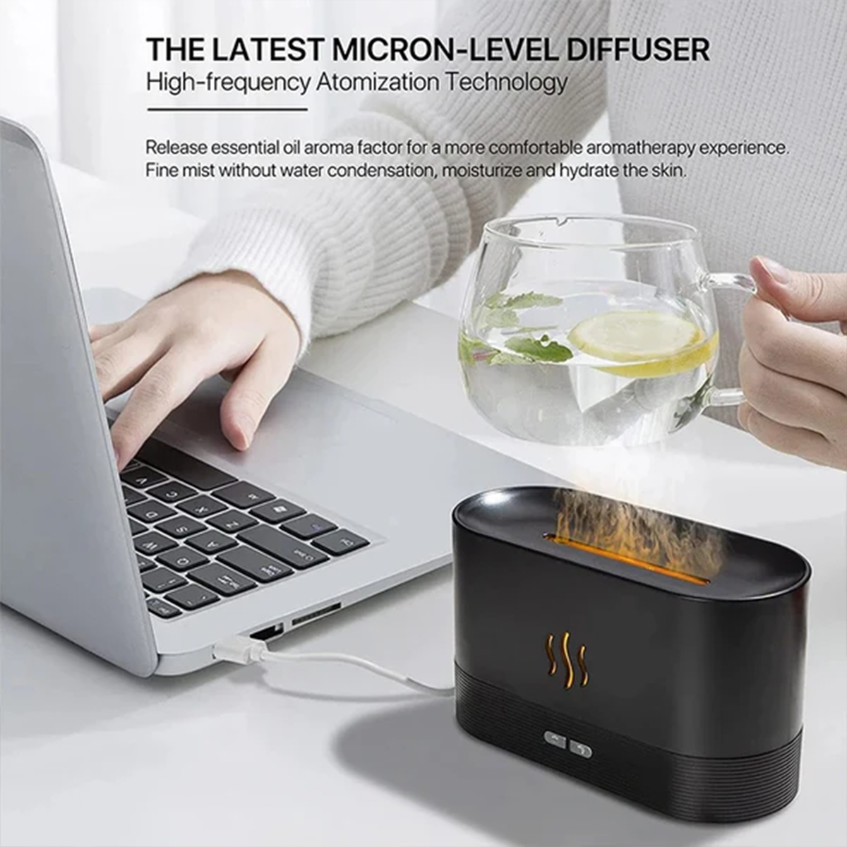 • تصميم مبتكر : يخلق تأثير لهب واقعي مع الضوء وبخار الماء، تصميم فريد يضيف شعور خاص ومتعة للحياة