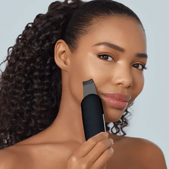 • التقشير : مرري الجهاز من الذقن نحو الشفاه، ثم إلى الأنف وحركيه لأعلى على طول الأنف وجانبيه، وبعدها من الذقن باتجاه عظمة الخد، وكرري على الجهة الأخرى من الوجه