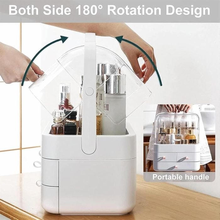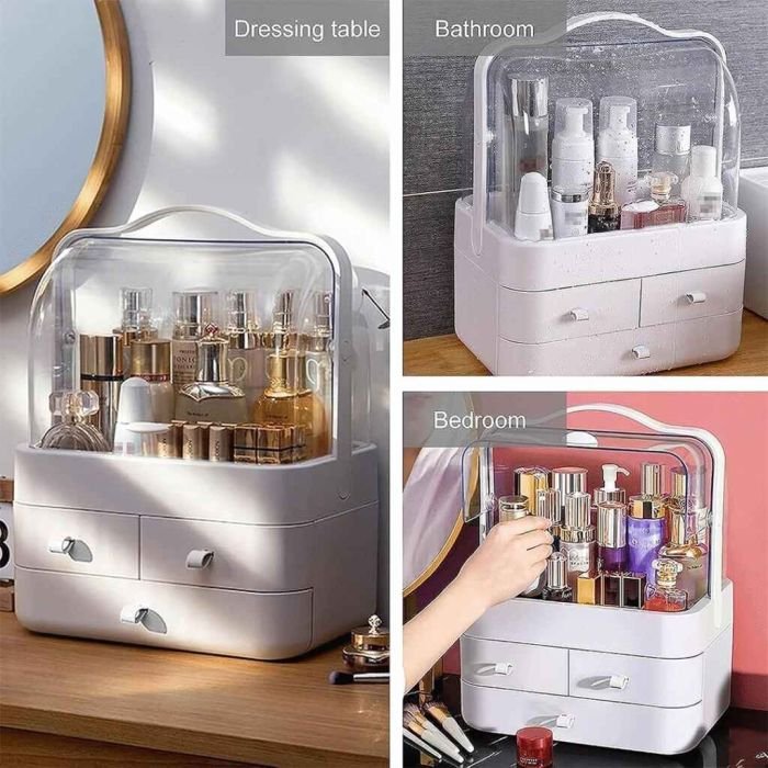 محمي من الغبار والماء – غطاء صندوق تنظيم مستحضرات التجميل يحافظ على مقتنياتك بعيدًا عن الأتربة والمياه، سواء في الحمام أو غرفة النوم. سهل التنظيف باستخدام منشفة.