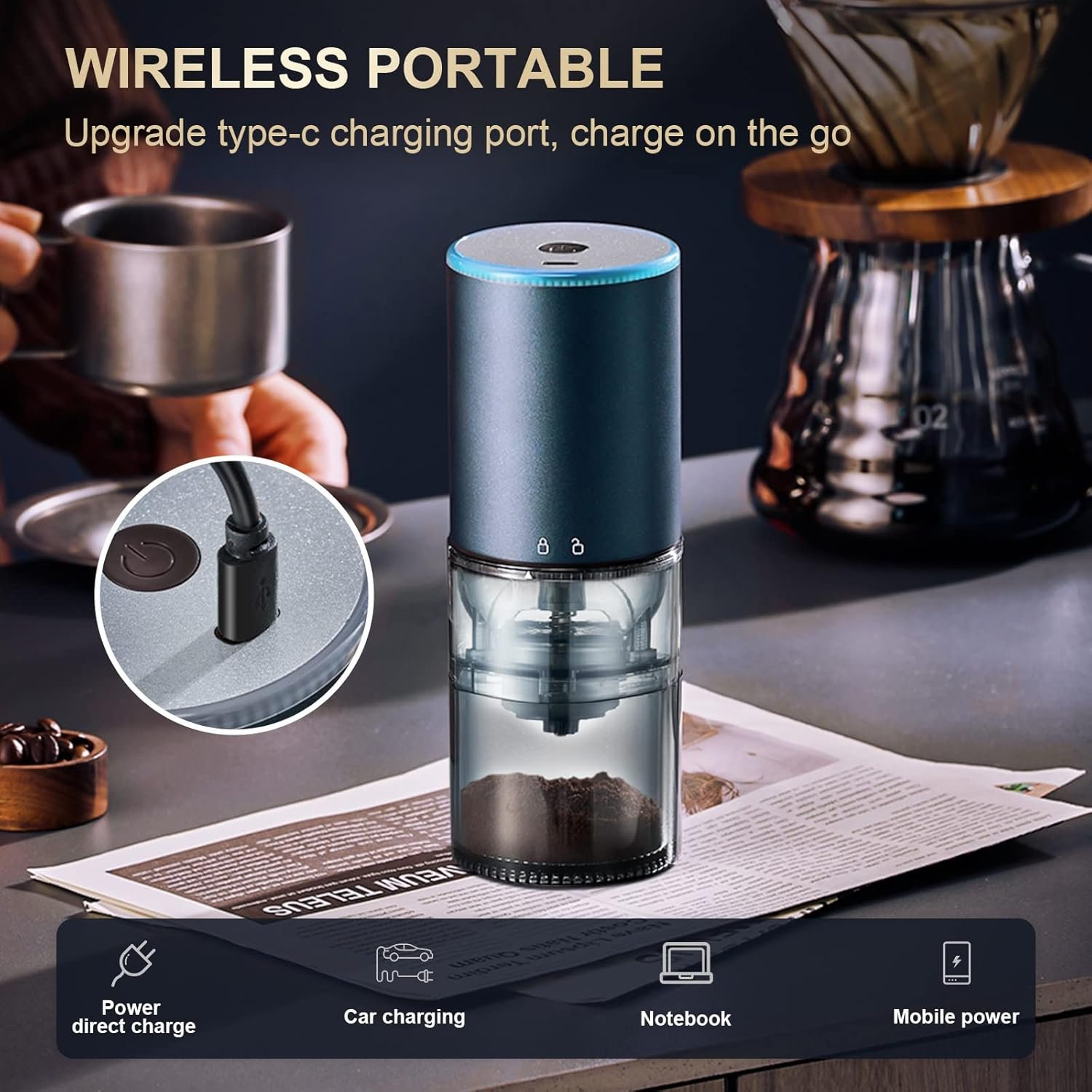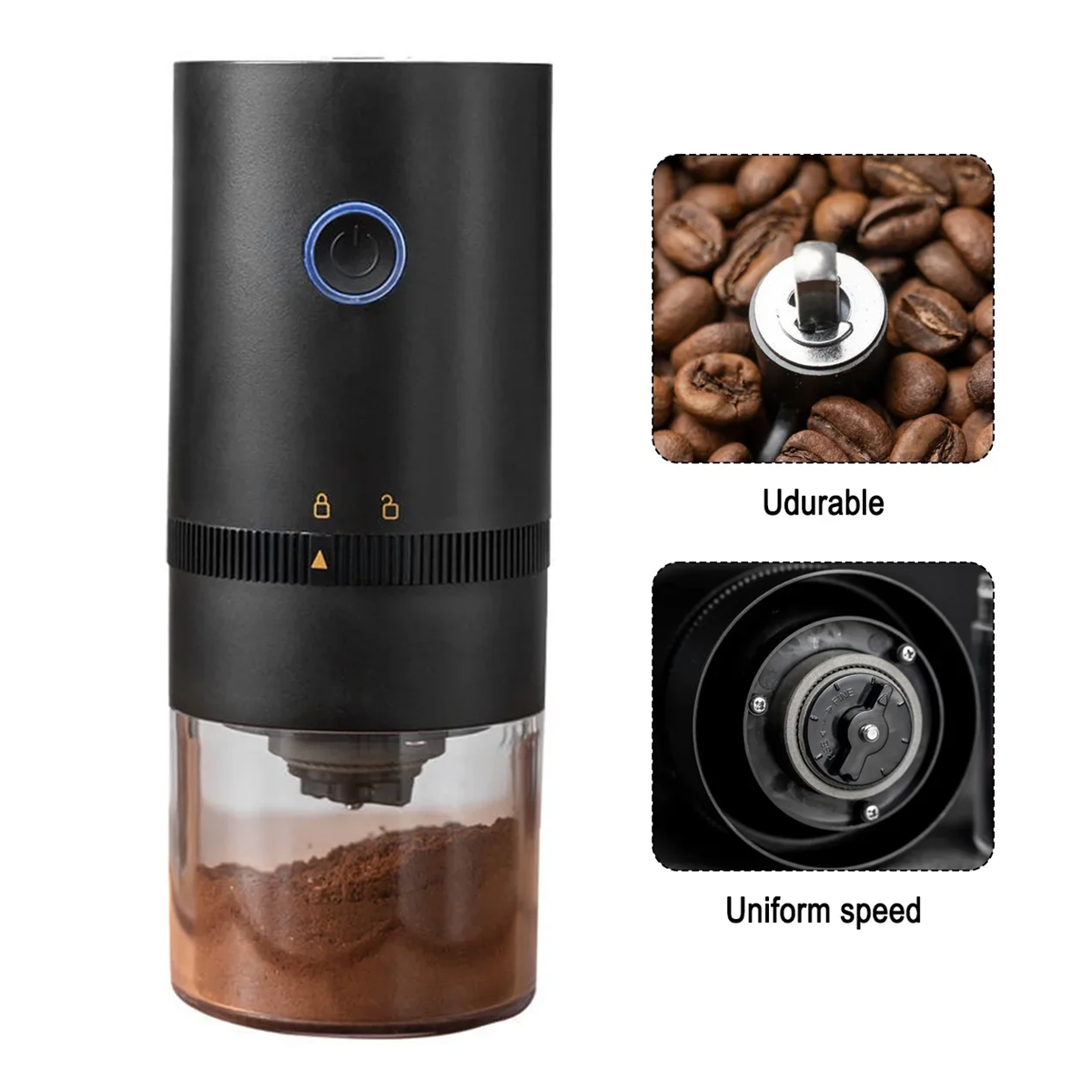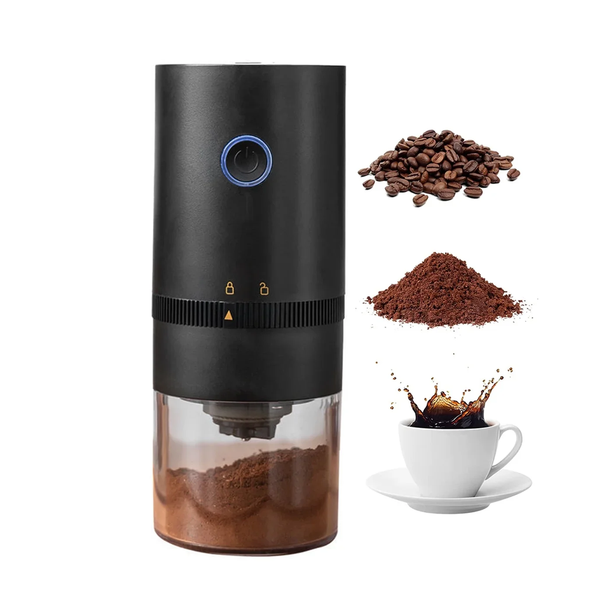 - مطحنة قهوة كهربائية صغيرة محمولة للاستخدام الداخلي والخارجي.