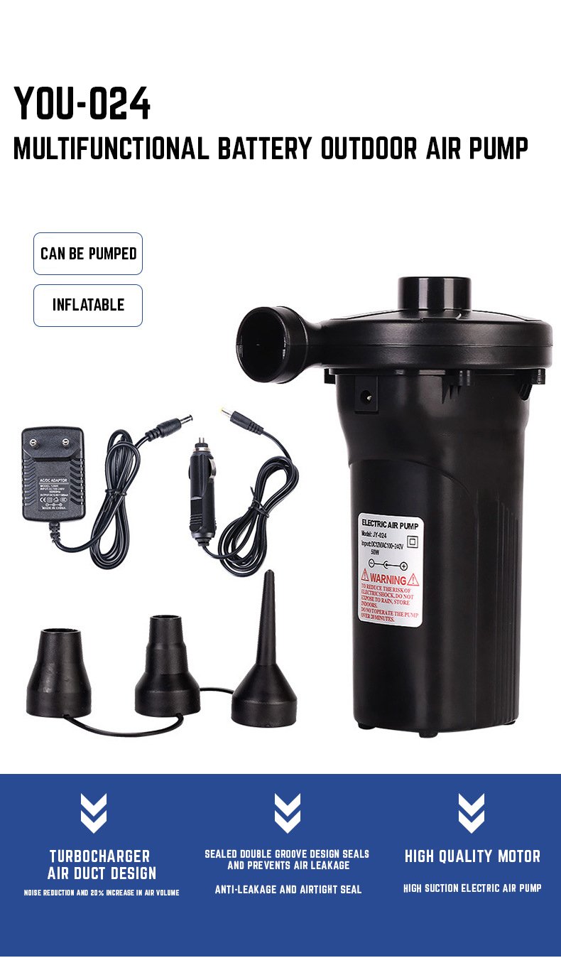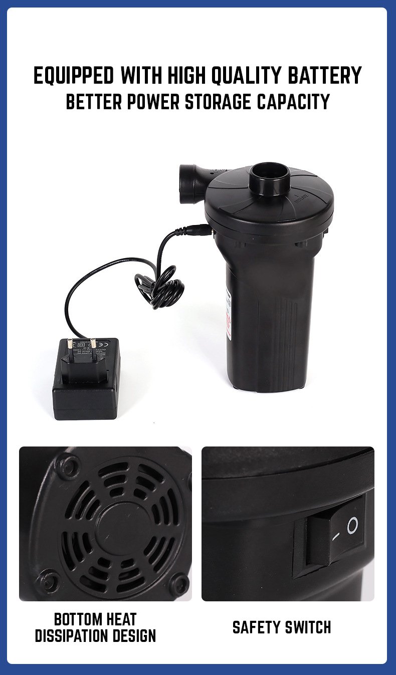 استمتع بتجربة نفخ سريعة وخالية من المتاعب في أي مكان مع مضخة الهواء القابلة لإعادة الشحن — قوية، مدمجة، ومحمولة، وتأتي مزودة بـ 3 فوهات وشاحن سيارة لتوفير أقصى درجات الراحة.