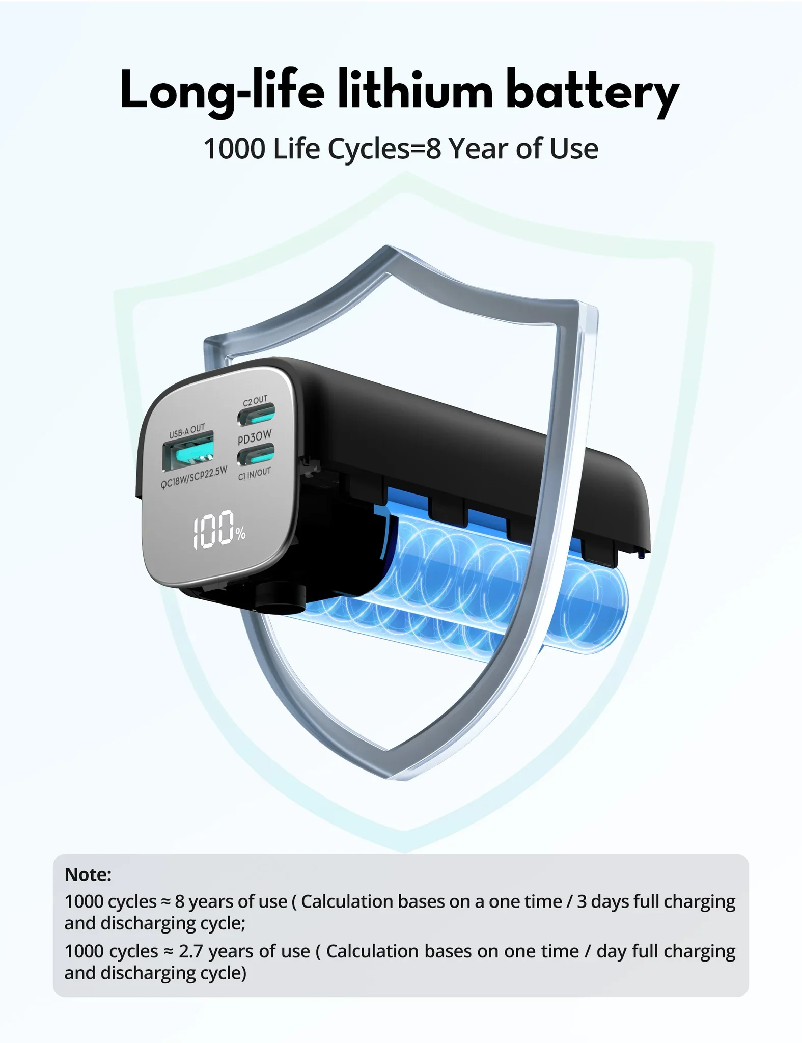 • دعم شحن سريع PD3.0 و QC3.0؛ إعادة شحن كاملة خلال 1.5 ساعة