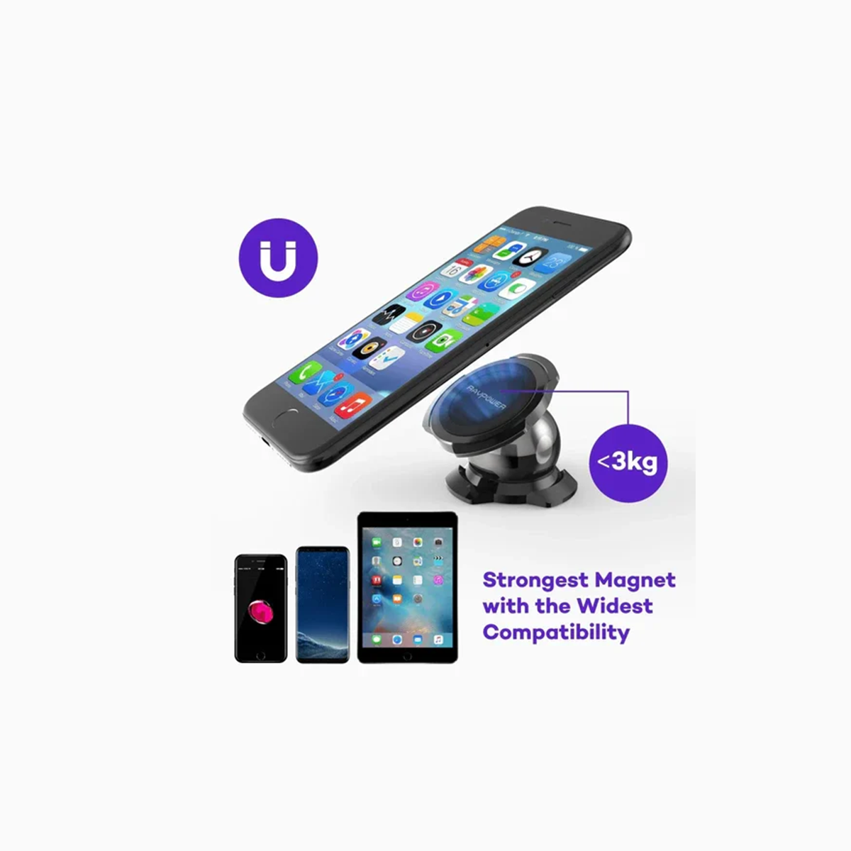 حـامل ومثبت مغناطيسي فائق الصغر للهاتف في السيارة - باللون الاسود من راف باور