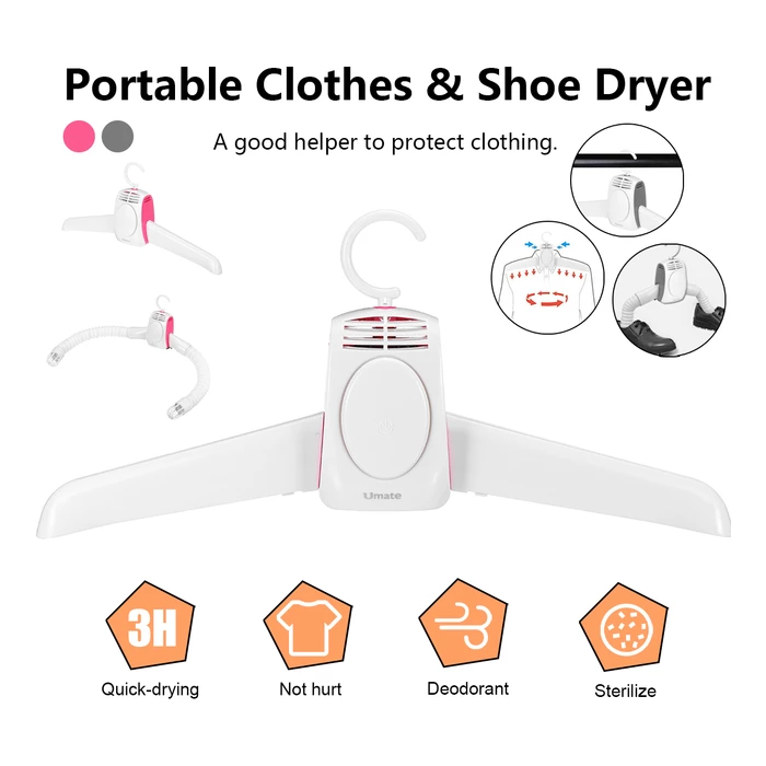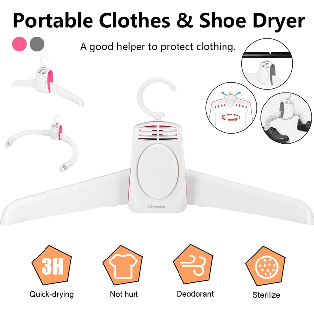 استمتع بتجفيف فعال للملابس والأحذية مع مجفف Umate المحمول. يتميز بتصميم مدمج وأنيق وتقنية تسخين سيراميكية، مما يجعله مثالياً للاستخدام في المنزل والسفر. ودّع الملابس الرطبة واستقبل الراحة والسهولة.