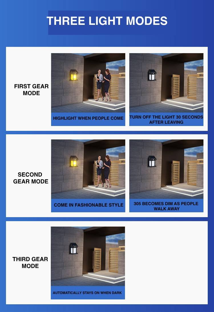 مصباح حائط لاسلكي يعمل بالطاقة الشمسية مع مستشعر الحركة ثلاثة أوضاع