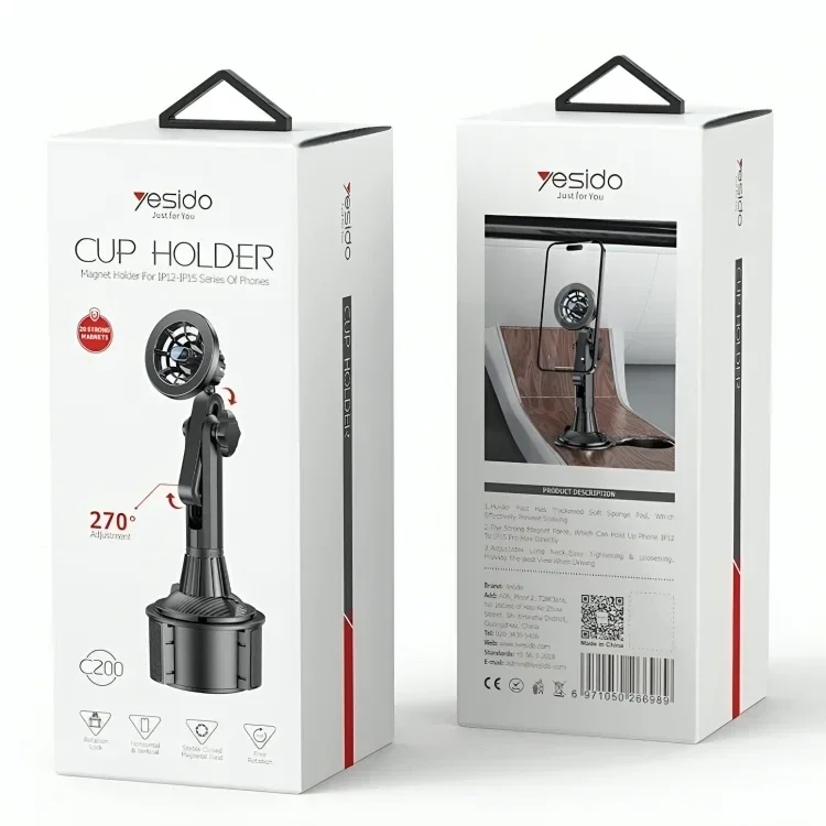 حامل الهاتف المغناطيسي للسيارة يثبت مكان حامل الأكواب من يسيدو (C200) - باللون الاسود