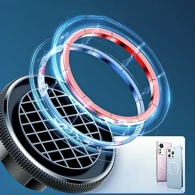 • المغناطيس: مزود بـ 20 مغناطيس قوي يشكلون حلقة مغناطيسية لتثبيت الهاتف بثبات وقوة امتصاص عالية.