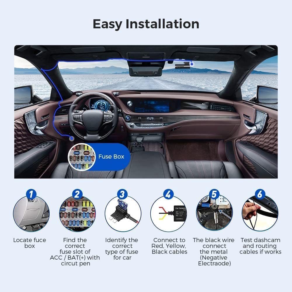- Complete Accessories - Contains all the components required to easily piggyback on the fuse box of any vehicle. Simply plug the required fuse tap cable into the vehicle’s fuse box to provide the camera with its own power supply.