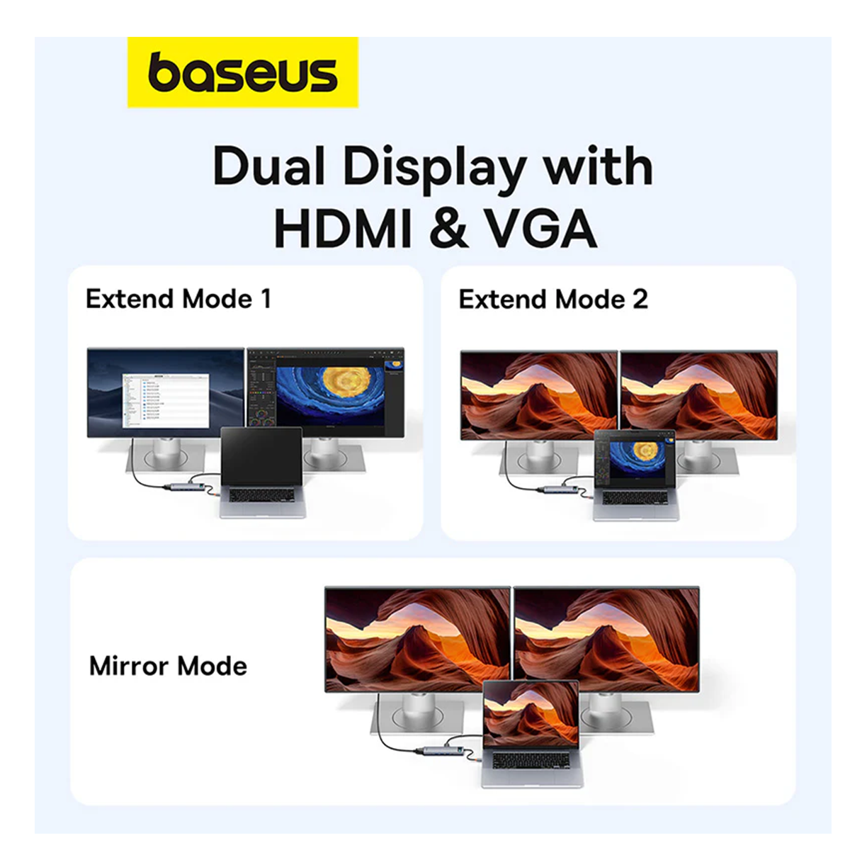 • Output ports : USB 3.0: 5 Gbps (max) (x3); USB 2.0 480 Mbps; HDMI: 4K@60Hz (max); VGA 1080P@60Hz (max); RJ45: 1000 Mbps (max); USB-C PD: 100W (max); 3.5mm audio