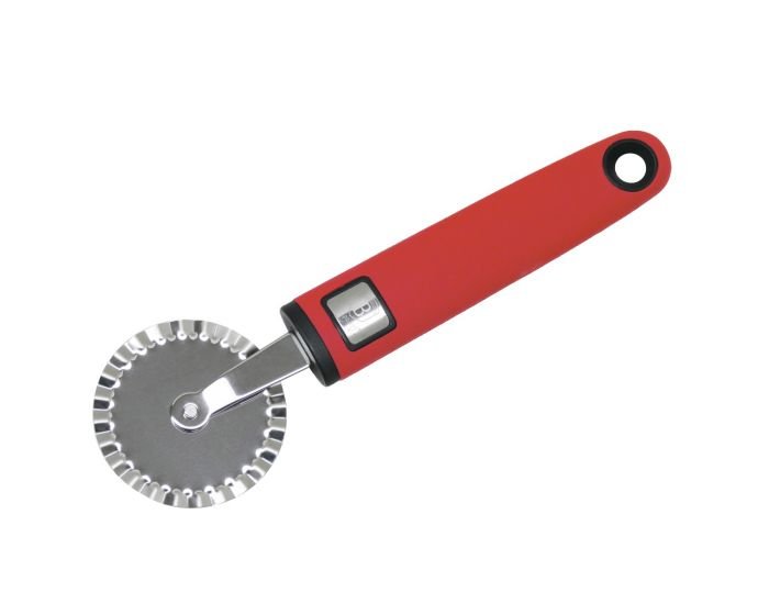 An original and practical pizza cutter with a very innovative and complete design, as it has a cutting blade, serrated spatula on the edge, scoop for portion serving and safety clamp.