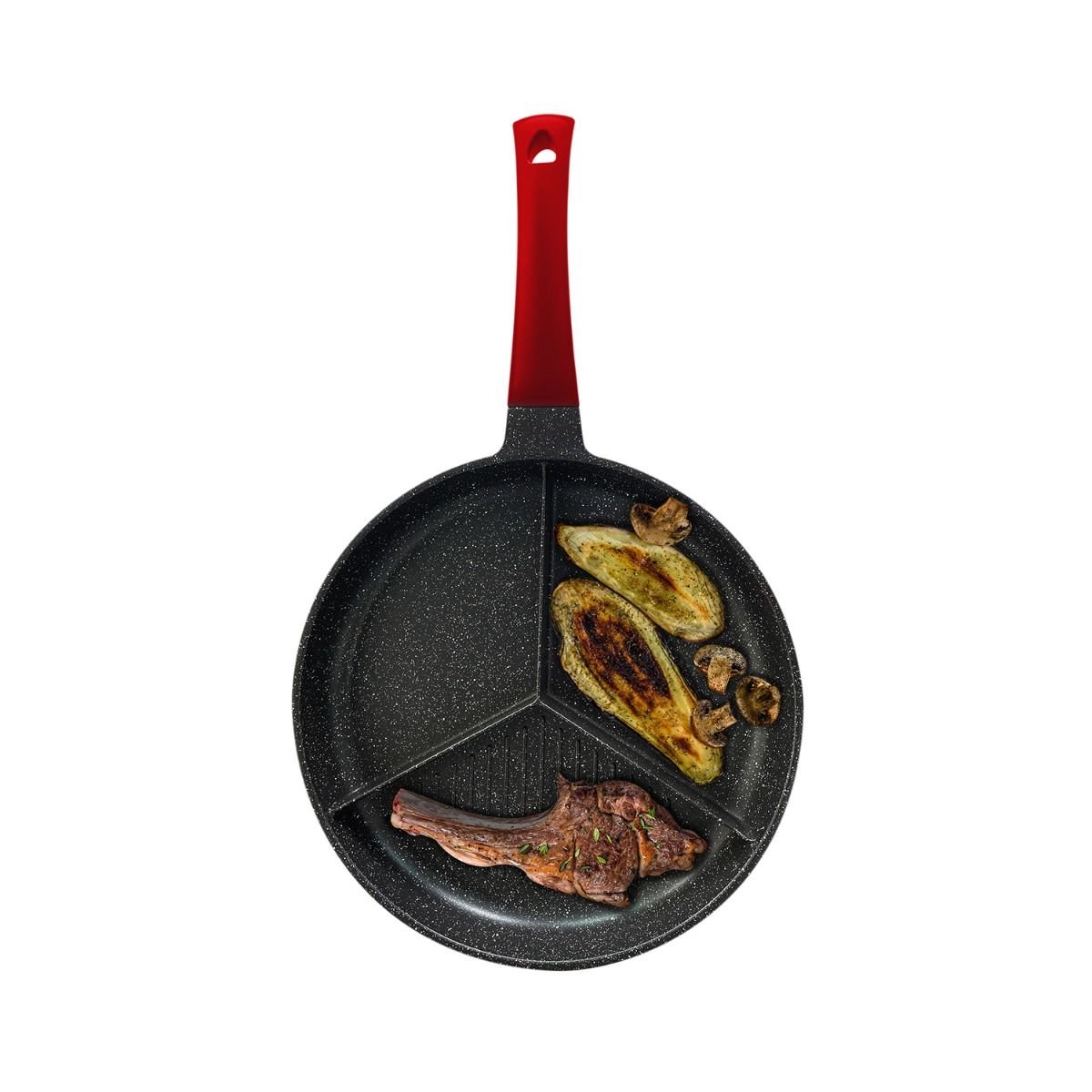 • Flat section – ideal for frying eggs or pancakes.