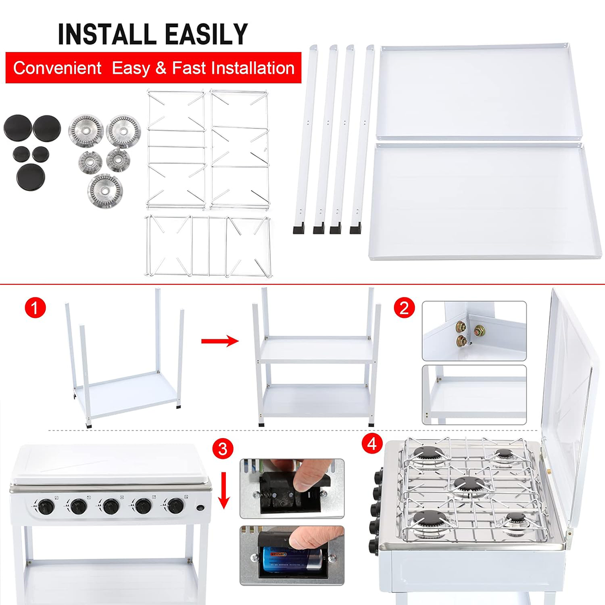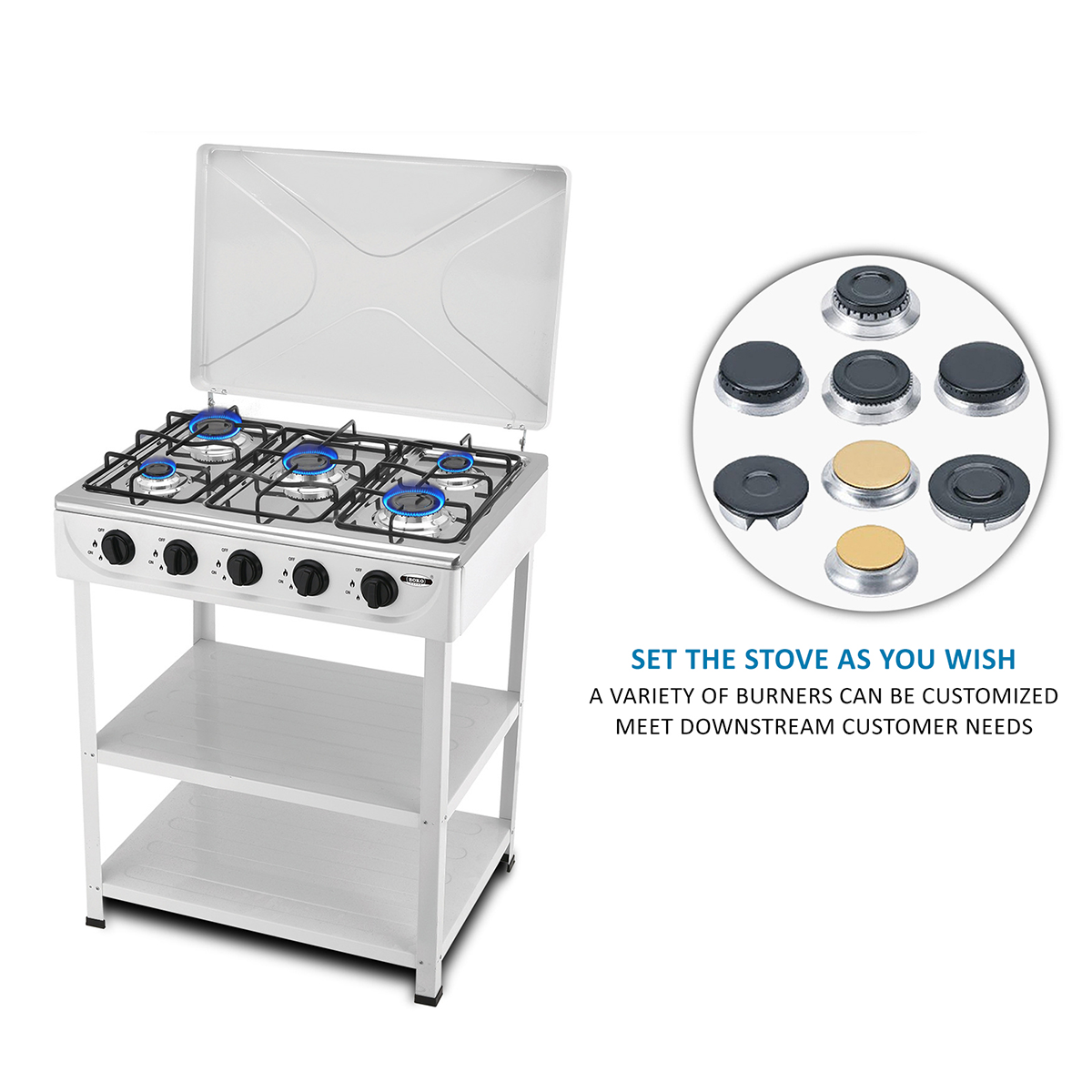 - Included Components: 1 Gas Stove with 5 Burners