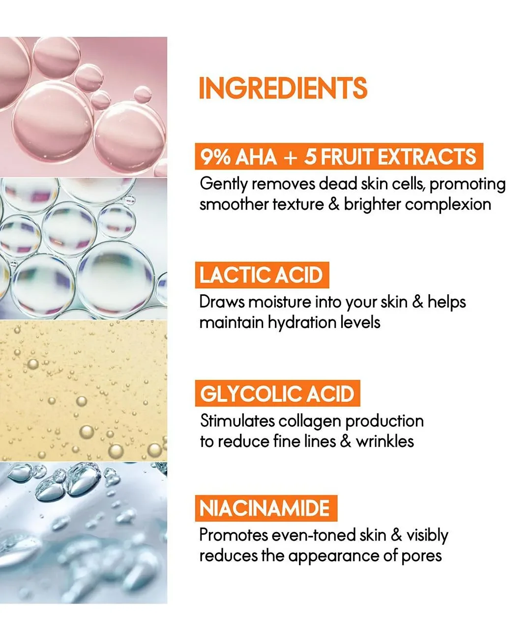 • Spot treatment serum with niacinamide and natural extracts to brighten pigmentation