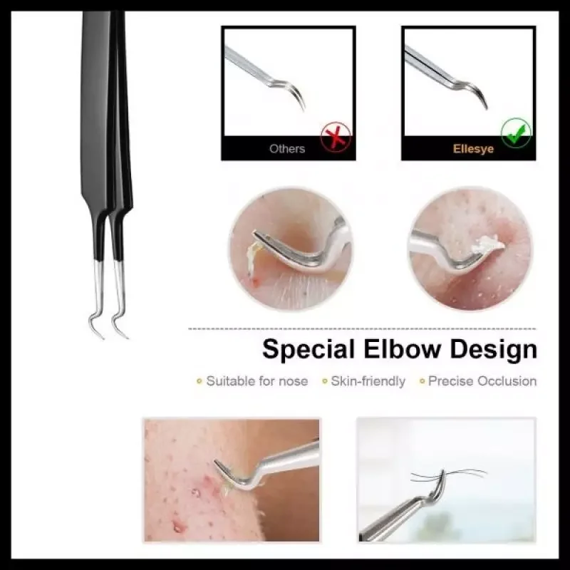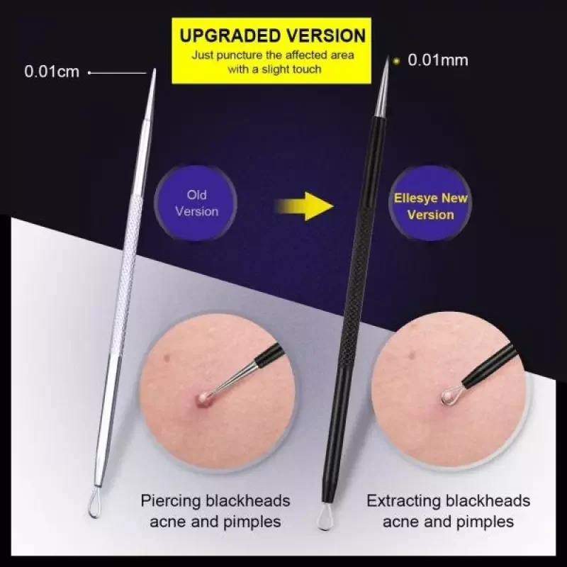 • Ellesye Blackhead Remover : 6-piece of blackhead removal tools in different sizes and angles for extract blackheads/whiteheads and remove different sizes of pimples, zits, acnes, fat grains on your chin, cheek, forehead and nose