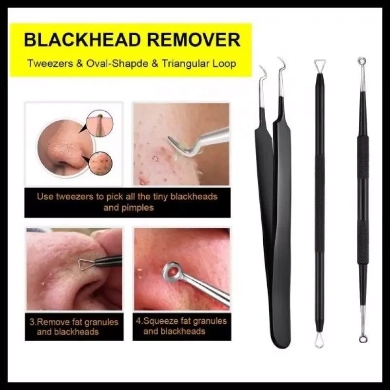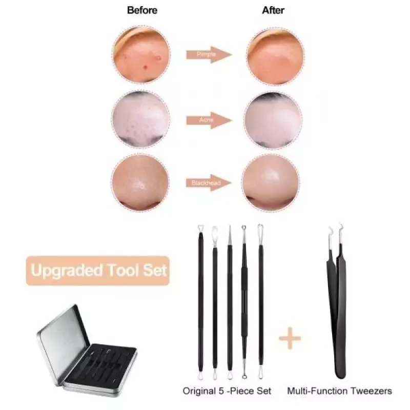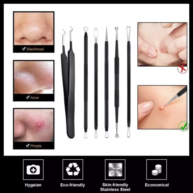 • 6-piece of blackhead removal tools in different sizes and angles for extract blackheads/whiteheads