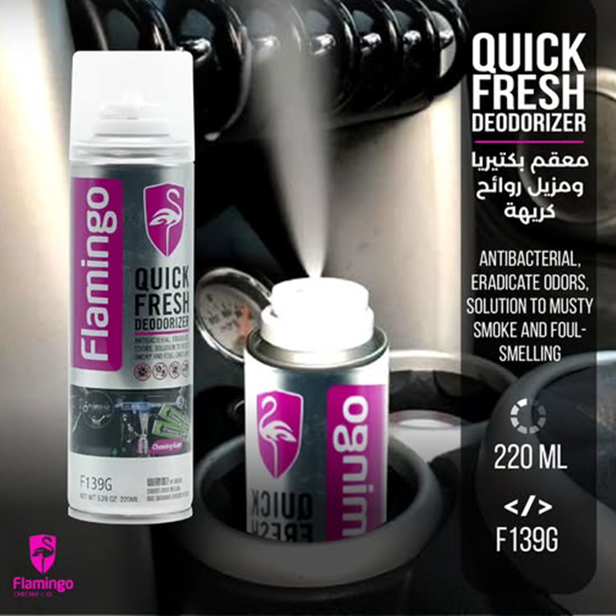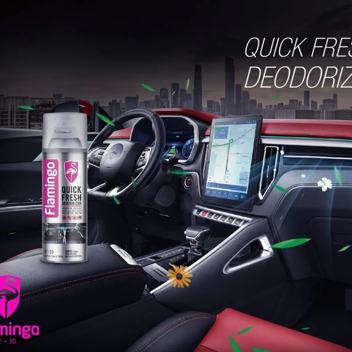 Flamingo QUICK FRESH DEODORIZER – LEMON F139L is a premium air freshener designed to eliminate odors and leave a refreshing, long-lasting lemon fragrance. This product is ideal for maintaining a pleasant and clean atmosphere in vehicles, homes, and other enclosed spaces.