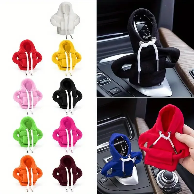 - Add style and comfort to your car with the unique hoodie gear shift knob cover!