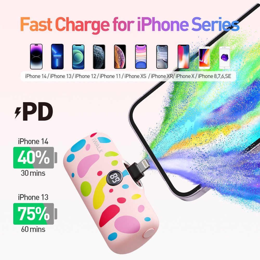 18W PD Fast Recharging : USB C power bank supports 18W PD fasting charging. 1.5H to fully recharge this small portable charger both via usb c plug & usb c connector.