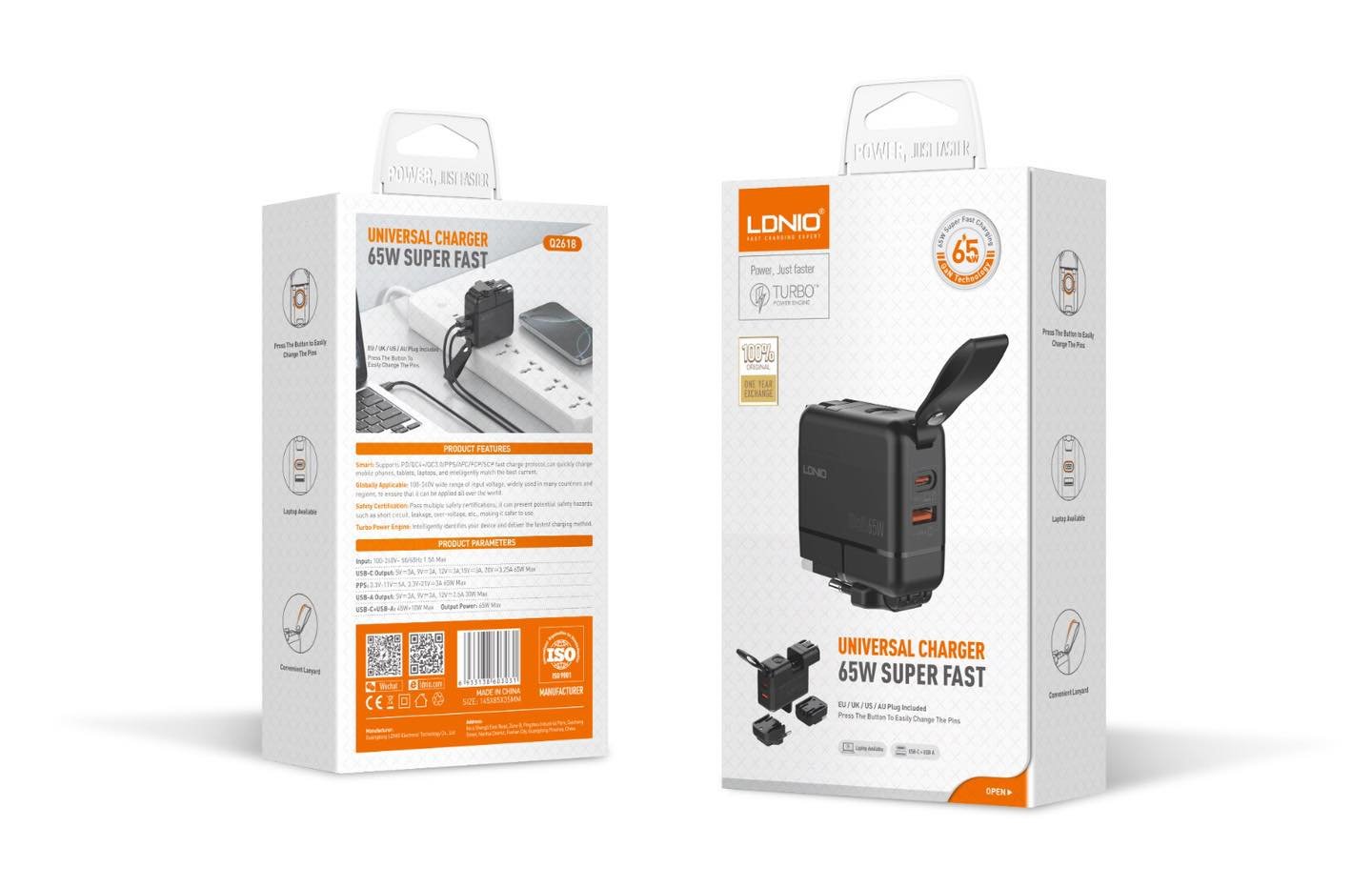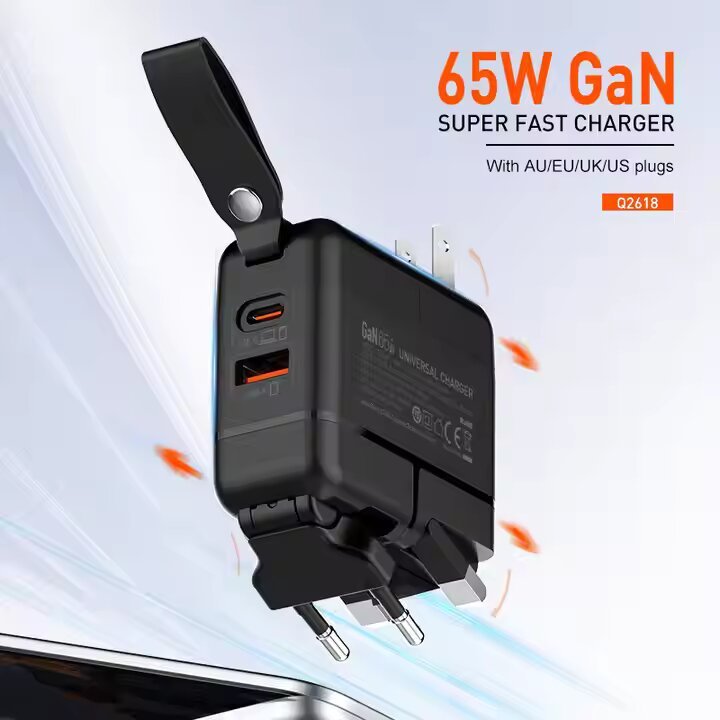 65W GaN High Tech Fast Charger - Input: 100-240V~ 50/60Hz 1.5A Max