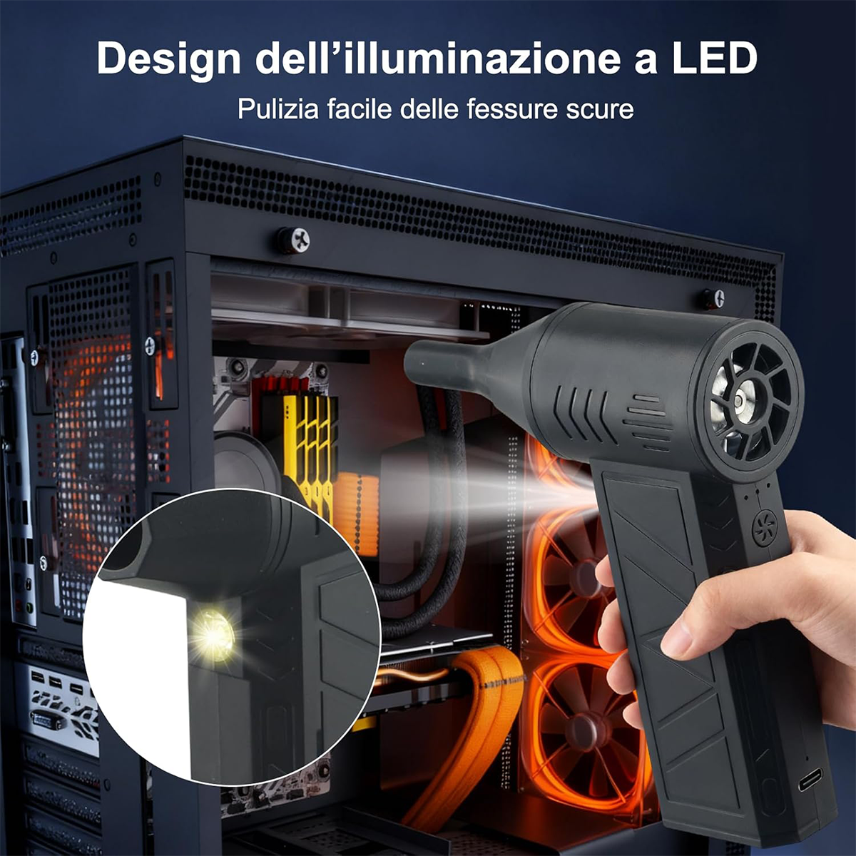 - Powerful Blowing Performance : Equipped with a low-noise, high-speed brushless motor, this blower can reach a maximum output speed of 130,000 rpm, with a wind speed of up to 52M/S and motor power of 200W for effective dust removal.
