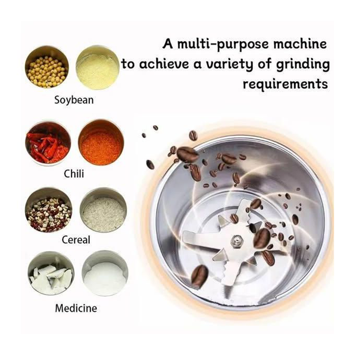 - Cutting Head : Food-grade stainless steel blade for fast and uniform grinding
