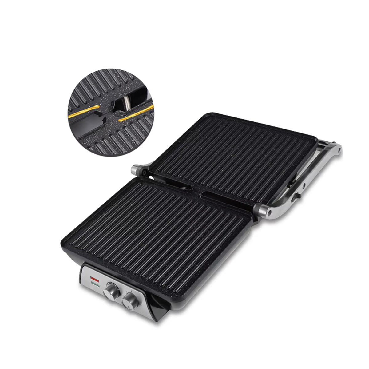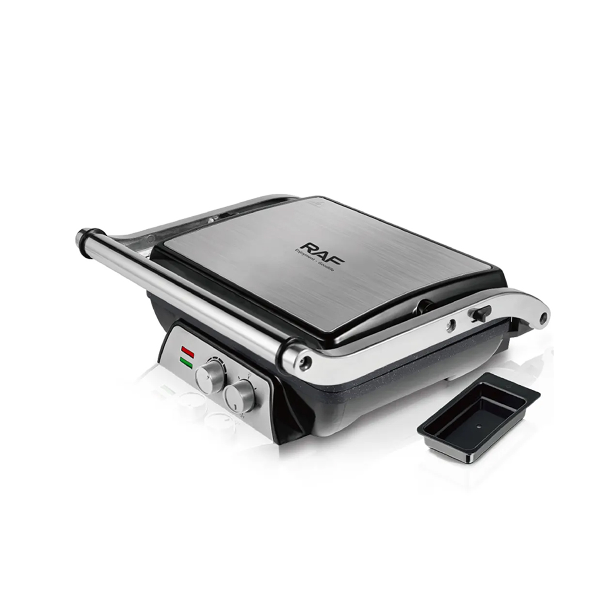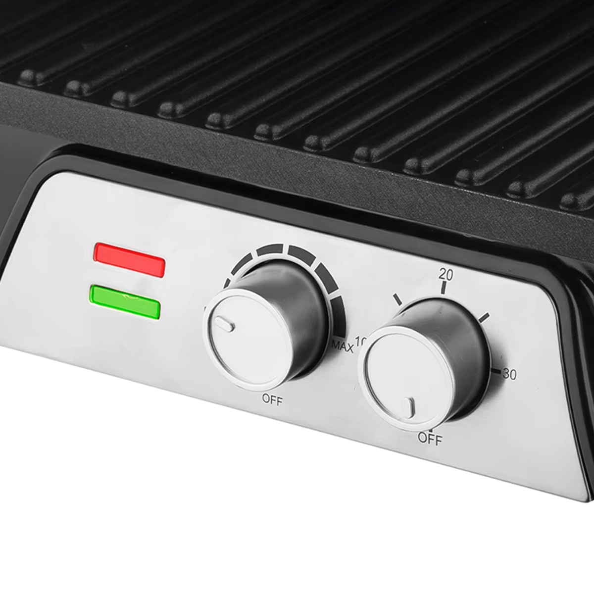 - Lid opens 180° allowing it to function as a double-sided grill.