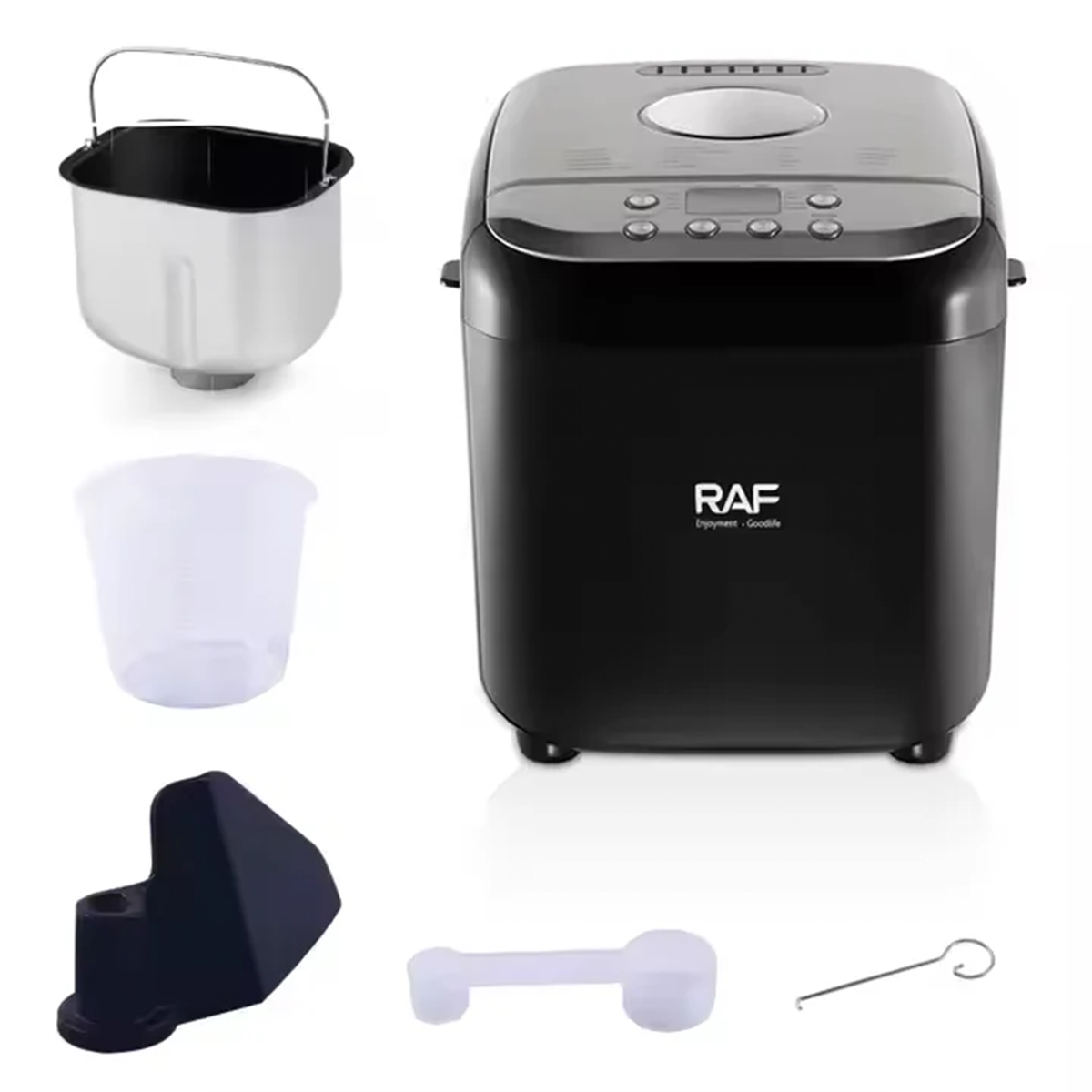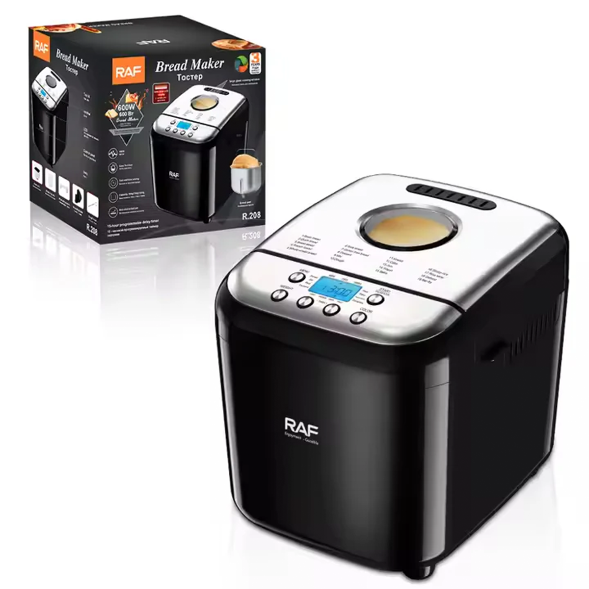 - Bake delicious homemade bread effortlessly with the RAF 600W Bread Maker! Featuring a large glass viewing window, LCD display, non-stick pan, and timer function, this smart baking appliance ensures fast, hassle-free, and perfect results every time.