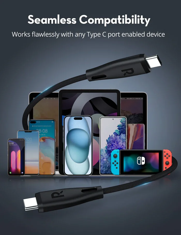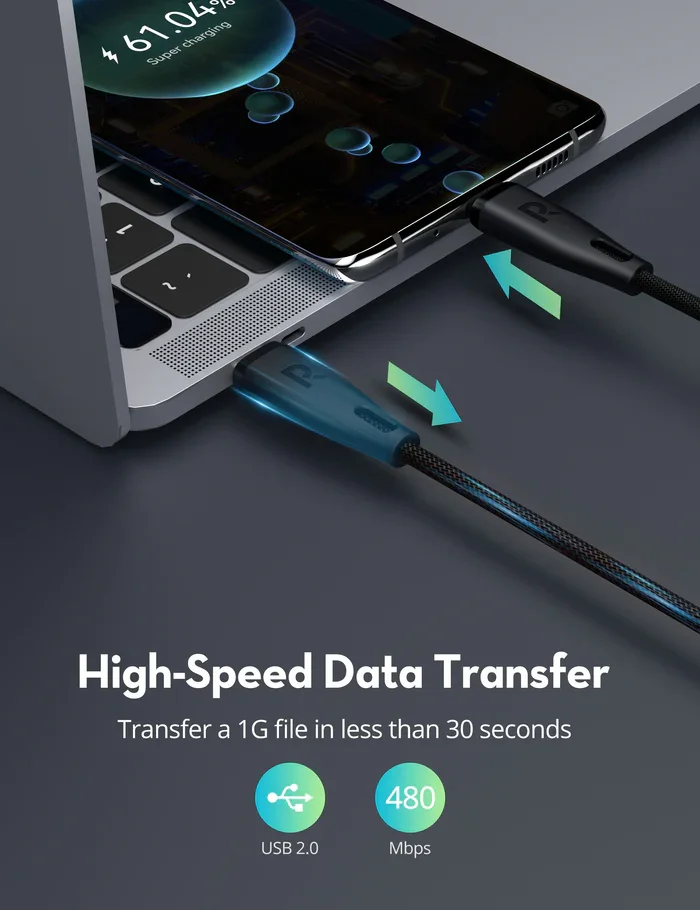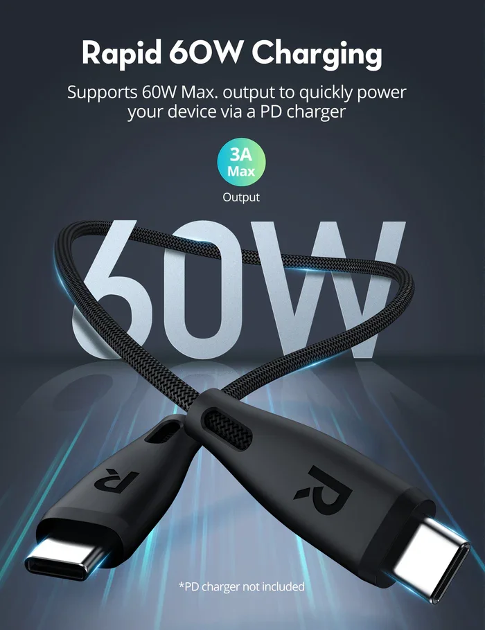• RAVPOWER USB C to USB C cable with PD Fast Charging up to 60W and Data Transfer up to 480Mbps are perfect for charging on most occasions at home, outdoors, office, car, or bedroom.