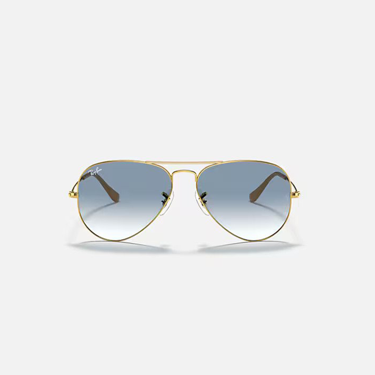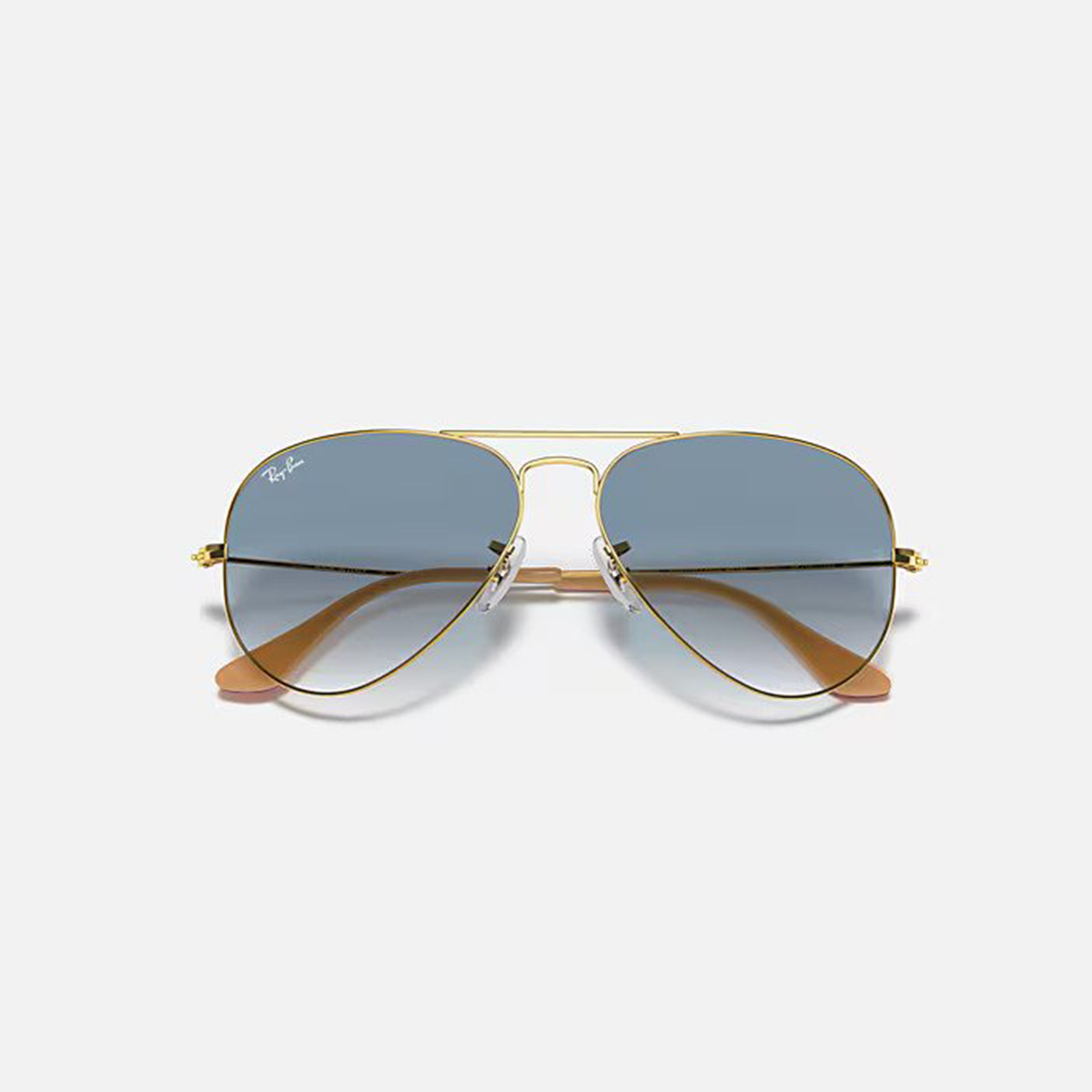 Wear RB3025 Aviator Gradient Sunglasses with a gunmetal frame and lens treatments including crystal polarized blue gradient, crystal gradient grey and crystal brown gradient.
