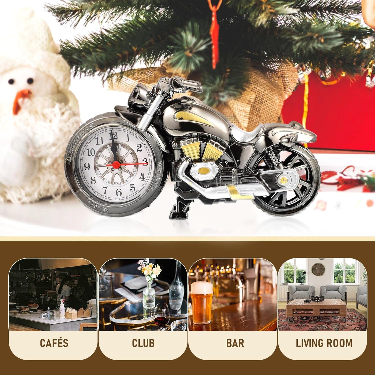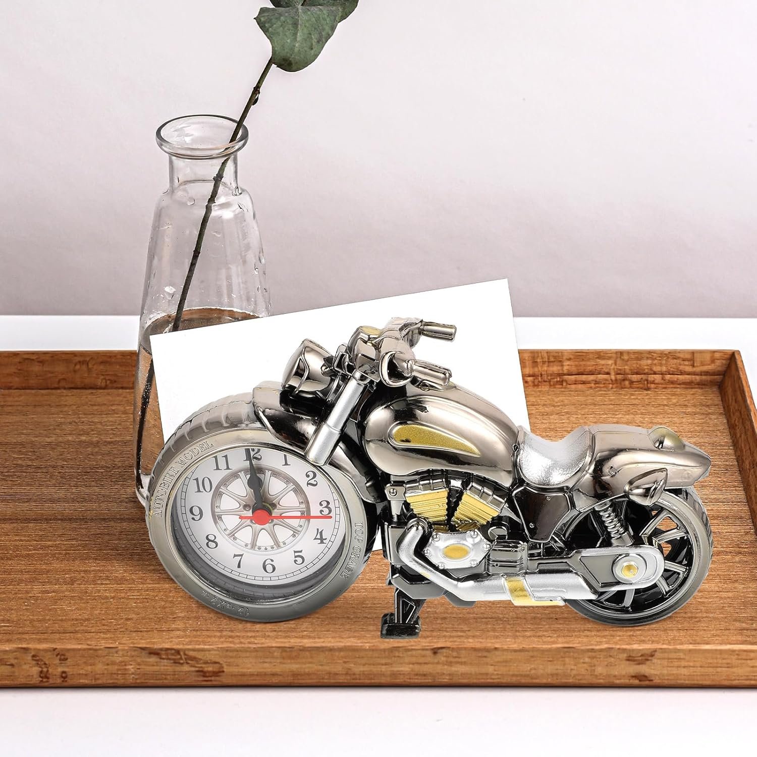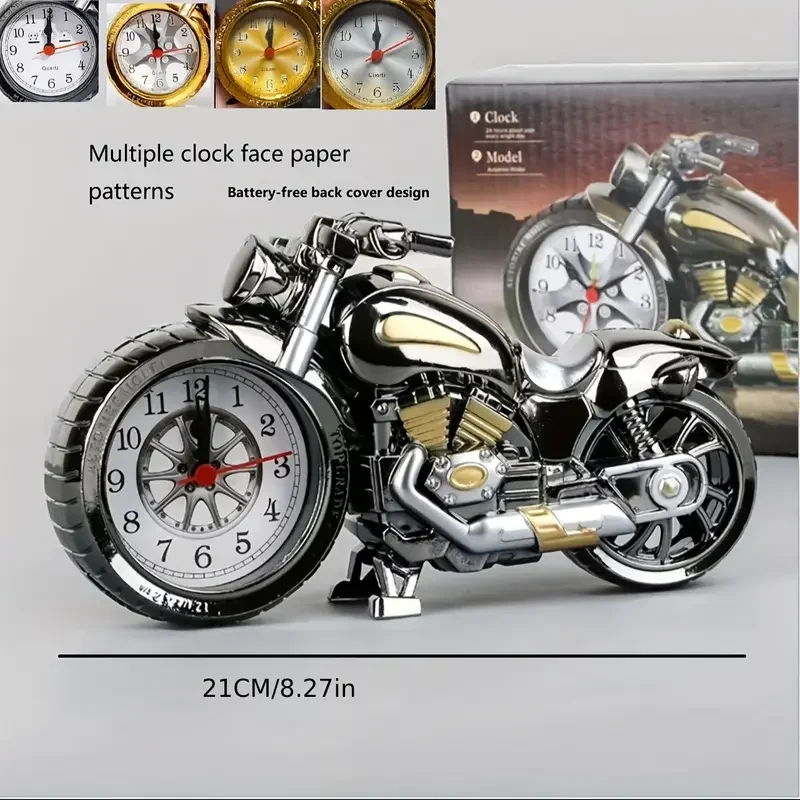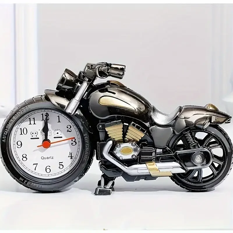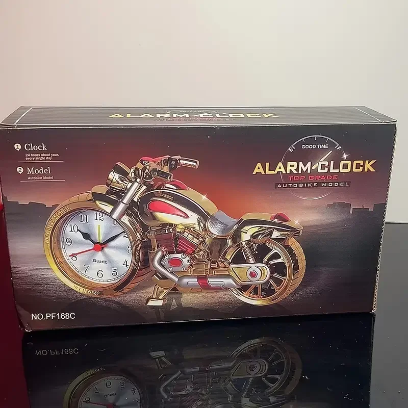 Experience a touch of classic style with this vintage motorcycle alarm clock! Designed as a unique desk or home accessory, this clock blends retro aesthetics with functionality. Battery-operated with precise mechanical movement, it is perfect for students, decor enthusiasts, and motorcycle lovers. A great gift choice for those who appreciate timeless designs.