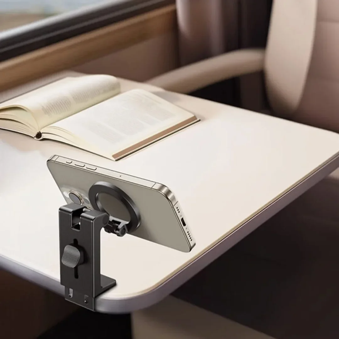 - It can be attached to the edge of a table, car headrest, or desk for comfortable use during viewing or calls.